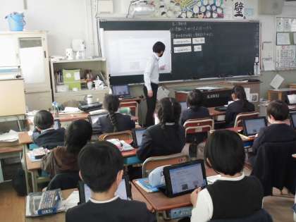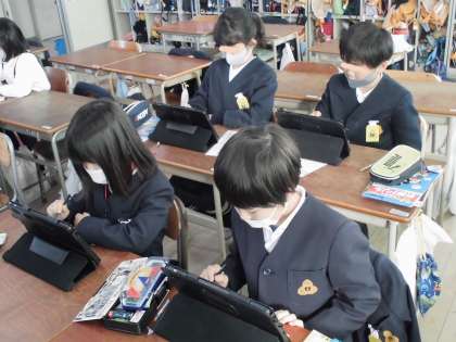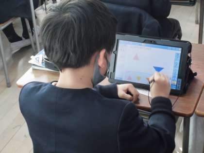1月21日(木)、3年生は算数科の学習で、タブレット端末を使って、二等辺三角形や正三角形を敷き詰めて、模様作りをしました。そして、敷き詰めてできた模様を観察することによって、その中に他の図形があることに気づいたり、平面図形の広がりや図形の美しさを確認することができました。