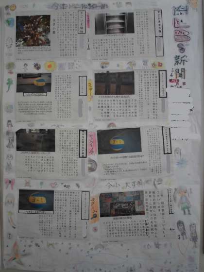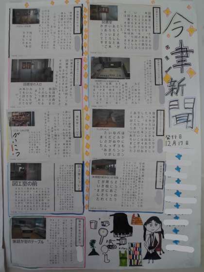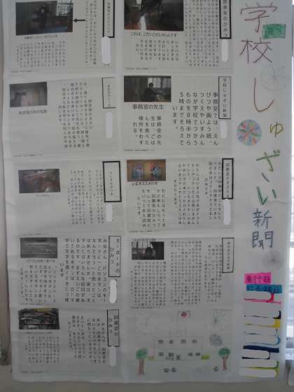 3年生は、総合的な学習の時間に、自分たちの通う「今津小学校」という身近な題材を取り上げ、学校の中で気に入っている場所や、お世話になっている教職員、学校にいる動植物など、「今津小学校のいいところ」について取材し、新聞にまとめました。