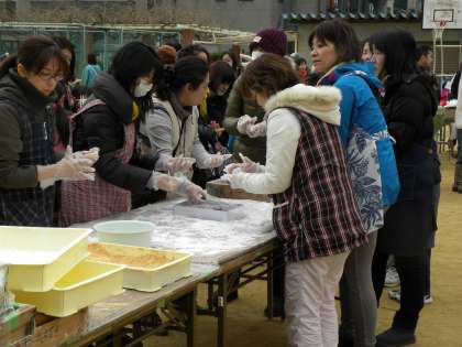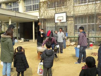 前の日からもち米を洗い準備してくださっていました。当日はつきたてのお餅をきなこ餅やあん餅、磯辺焼き(焼き餅)にして食べました。