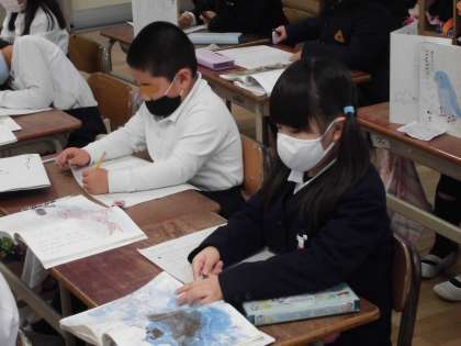 3月2日(火)、1年生は国語科の学習で、「スイミー」の物語を読みました。そして、好きなところを見つけて、ワークシートに書きました。そのわけも書きました。