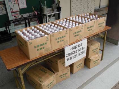*よろしければ、災害救助用飲料水をお持ち帰りください。