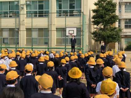 今日から新年度、一学期のスタートです。2年生から6年生までが校庭に集まり始業式を行いました。転任、新任の先生方の紹介のあと、校長先生から話がありました。みんな学年が一つ上がって頼もしくなったようです。進級して気持ちが新たになっている今、学習や生活での目標を立てて頑張ってほしいと思います。