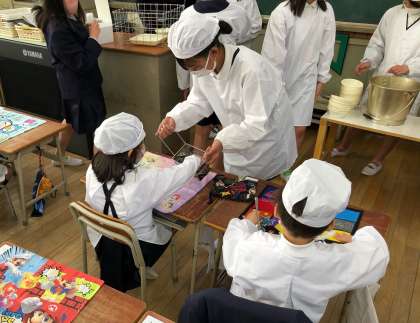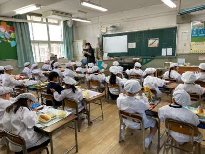 食事中は静かにいただきました。食べ終わってから「おいしかった」という声がどの教室からも聞かれました。