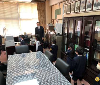 1年生が担任の先生に引率されて学校を探検しました。職員室、校長室にも訪ねてきてくれました。学校生活にも少しずつ慣れてきたようです。