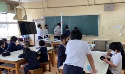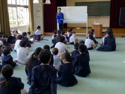 安全な登校を行うために分団集会が行われました。地域ごとの分団にわかれ、新6年生の班長を中心に、登校にあたっての注意事項など色々と相談しました。