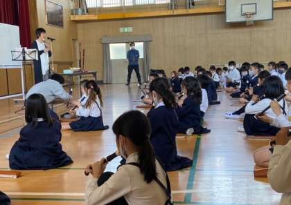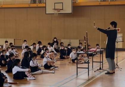 特別支援学級サポーターの先生によるリコーダーを使った音楽の特別授業を3学級あわせて行いました。