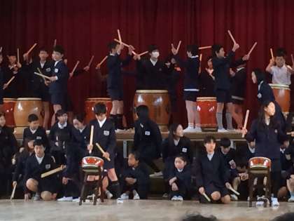 各学級で創作した祭りばやしです。リコーダ—の素敵な音色も太鼓をしっかり支えていました。