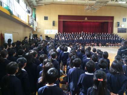 次に全員によるゲームを楽しみました。6年生の先生にちなんだクイズをしました。