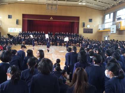 はじめに在校生がお祝いの言葉を呼びかけました。