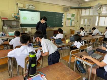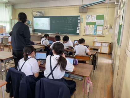 マイクロソフトの「Power Point(パワーポイント)」を使って、自分の名前をイラストなどを使って紹介する資料づくりをしてみました。友だちとできばえを見せ合ったりしながら楽しく取り組みました。