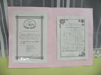 教職員へ茶話会の招待状が届きました。その中にはお手紙も添えて。