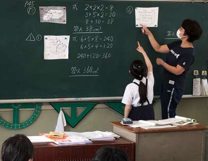 これまでに学習した直方体の体積の求め方を使って、複雑な形の体積を求めました。