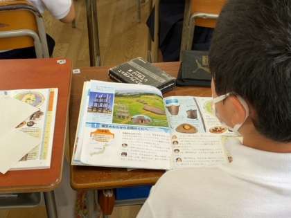 縄文時代のくらしについて学びました。当時のすまいである竪穴式(たてあなしき)住居の特徴について考えたこと、気づいたことを学級内で発表し合い理解を深めました。
