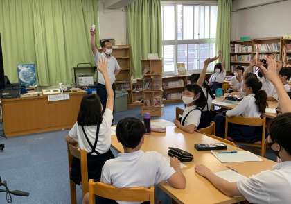 今日の4時間めから6時間めまで、6年生の3学級に対してそれぞれ1時間ずつ、校長先生によるキャリア教育と称する授業が行われました。昨年まで、民間企業で働いていた校長先生の経験に基づいて、ビジネスで成功している企業にはどんな理由があるのか、実例を交えた説明があり、子どもたちは興味深く聞いていました。まとめの「夢や目標を実現するためには、知識の積み重ね、経験の積み重ねが大切」との話についても真剣に耳をかたむけてくれていたようです。
