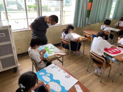 図工 「野菜やくだものを入れて絵をかこう」 (2年)