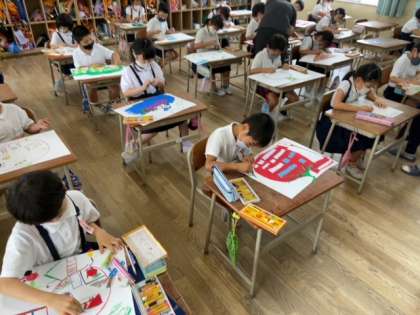 子どもたちの想像の世界をクレパスを使って描きました。子どもたちの柔軟な発想力にはおどろかされます。