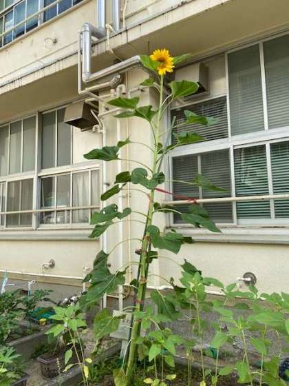 学習園のひまわりの花が咲きました。「太陽の花」と言われるだけに、力強く凛とした姿です。子どもたちもその姿に元気をもらえるのではないでしょうか。