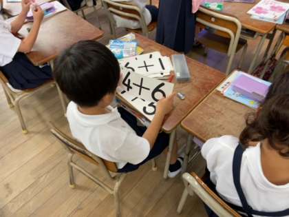 算数の基本的な学力を定着させるために、計算カードを使って足し算の勉強をしました。くり返し行うことがゲーム感覚につながるようで、「もっとやりたい」という児童の声が聞かれました。