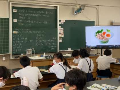 「生物どうしの食べる・食べられる」という流れ、食物連鎖について学びました。食べ物のもとを考えると最終的には植物に行きつくことに気づきました。人は命を受けついで生きていることもあわせて考えてもらえればと思います。