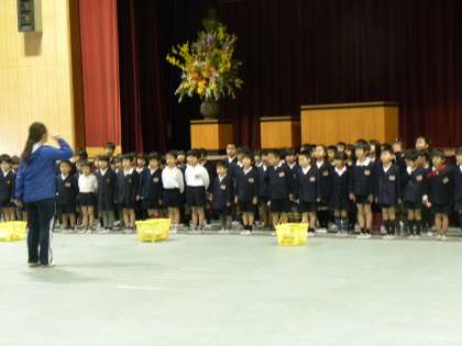 1年生が入学式での「歓迎のことば」の練習をしています。