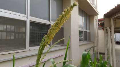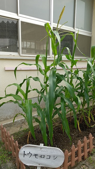 なかよし学級の花壇でトウモロコシの花が咲きました。「トウモロコシの実はよく知っているけど花はあまり見たことがない」という子どもたちにじっくりと観察してもらいたいと思います。