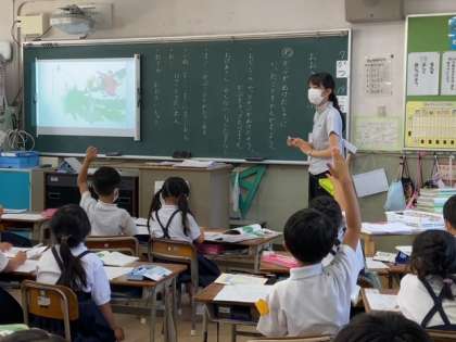 絵本でよく目にする「おおきなかぶ」について学んでいます。登場人物のおじいさんやおばあさん、ねこやねずみなどの動物の気持ちを考えることを目当てに学習しました。