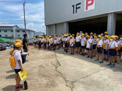 グリーンロッヂの前で開所式を行いました。施設の方からのお話をしっかりと聞くことができました。いよいよこれから活動開始です。