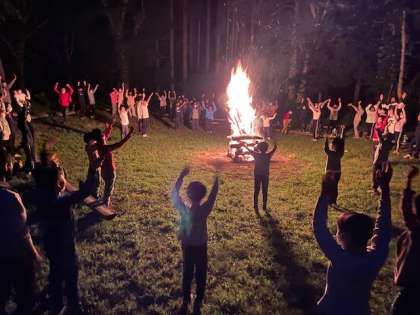 東京オリンピックで聖火台に火が灯ろうとしている同じ夜に、ハチ高原で炎を囲んで楽しい時間を過ごしました。明日も頑張りましょう。