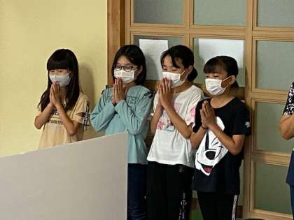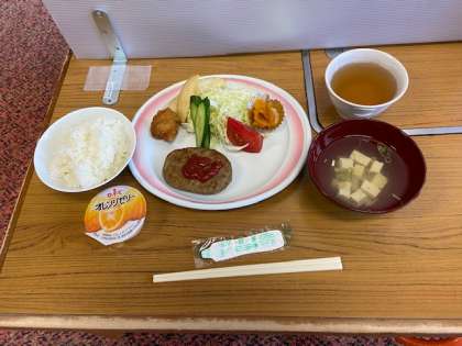 夕食の時間です。食事係の声がけでみんなで「いただきます」をしました。