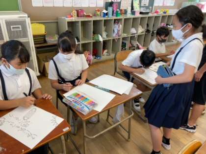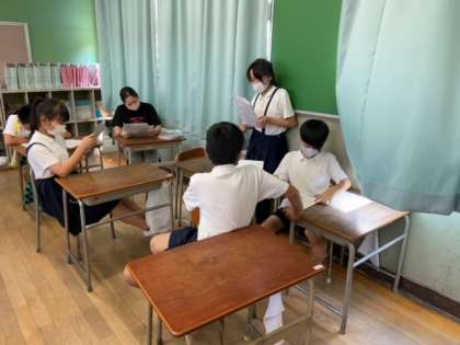 5,6年生による二学期はじめての委員会活動です。掲示委員会では、ハロウィーンの時期にあわせての校内掲示、デコレーションを考え、作成をはじめました。保健委員会ではポスターづくりとあわせて健康に関する意識を高めるための演劇の企画を進めています。今日は台本の読み合わせを行いました。