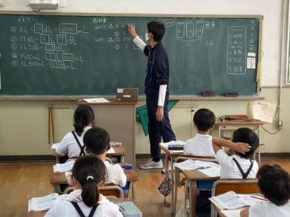 リットル、デシリットル、ミリリットルといった量の単位について学びました。実生活のなかで馴染みがある水やジュースのペットボトル、やかんなどをイメージしながら考えていきました。