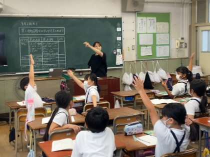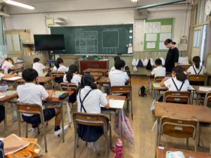 先週、買い物に行った場所、日付、買った物を学級みんなで報告し、その数を集計しました。人数、場所を軸にして棒グラフにまとめていきます。