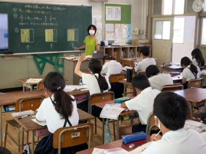 分母どうし、分子どうしの関係を調べることを通じて、等しい分数のつくり方を考えました。比例の考えを持ち出しながら、みんなで学びを深めました。