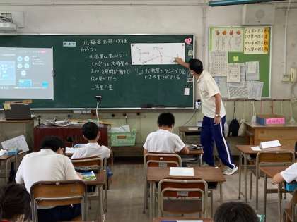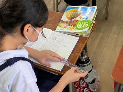 北斗七星、カシオペア座との位置関係をもとに北極星を見つける手立てを学びました。ノートに図をかいて考え方をまとめました。実際に夜空をながめて見つけてもらいたいと思います。