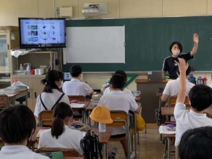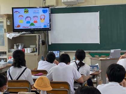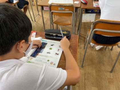 ビデオ映像で流れる英語の音声をヒアリングして「だれがどの場所へ行って何をしてどう思ったか」を答えました。しっかりと聞き取りができていて、さすがは6年生との思いをもちました。