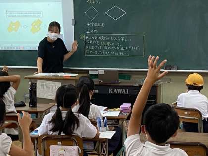 平行四辺形、正方形、ひし形など、四角形のなかでもそれぞれ特徴がある図形があります。その違いがどこにあるのかをみんなで考えました。