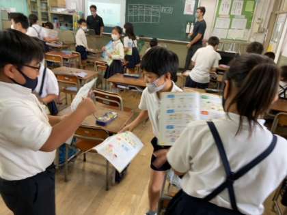 友だちが「オレンジが好きか」「ミルクが好きか」などを予想したうえで、英語で「Do you like 〜 ?」と聞いて確認するゲームをしました。みんな楽しそうに会話を進めてくれました。