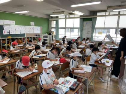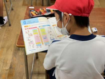自分の一日のすごし方をふりかえって考えてみました。「なぜ早く寝ることがよいと思う?」「早く寝ることで成長ホルモンという身体をつくる物質が出てくるんだよ」という先生からの話を興味深く子どもたちは聞いていました。