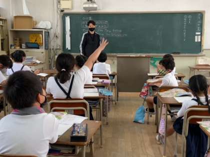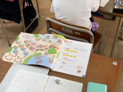 新しい計算のしかたとして、かけ算の学習をはじめています。今日は、今週から教育実習に来ている先生に授業を行ってもらいました。フレッシュな先生の声に、子どもたちも大きな声で元気に答えていました。