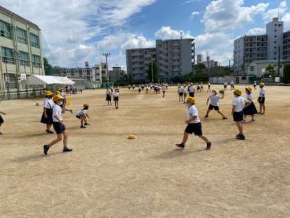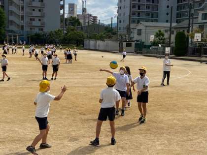 秋分の日の翌日となった今日は快晴にめぐまれ、気温もさほど高くありません。中休みには大勢の子どもたちが校庭に出て、元気いっぱいにドッジボールなどを楽しんでいました。