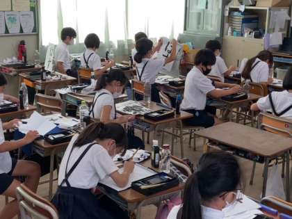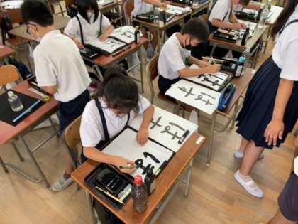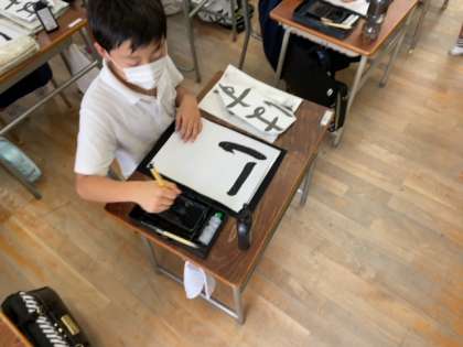 ひらがな二文字をバランスよく書くのは簡単なようでむずかしいところですが、子どもたちは丁寧に筆を走らせていました。
