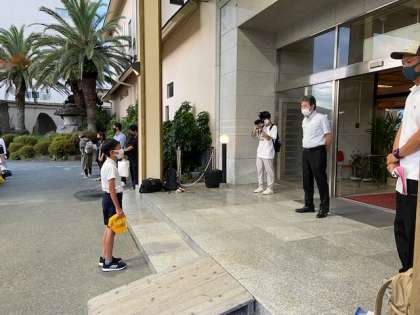 ホテルの方にお世話になるにあたっての諸連絡も含め、開所式を行いました。ホテルの責任者の方から温かい歓迎の言葉をいただきました。