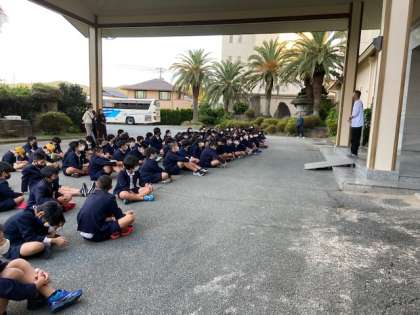 朝の集いです。軽く体操をしてから先生からの話がありました。今日もがんばりましょう。