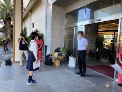 お世話になった志摩ビーチホテルの皆さんにお礼を伝える閉所式を行いました。ホテルの支配人の方からご挨拶をいただき、続いて代表児童からお礼を伝えました。ホテルのご関係者の方からのおもてなしはみんなの思い出になることでしょう。