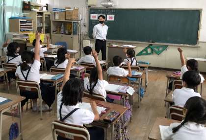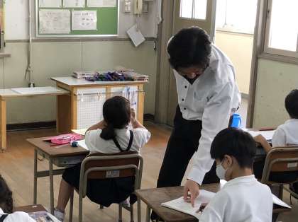 今日は5の段。「やった、真ん中きた」「ダブルビンゴできた」など子ども達みんな楽しく学習に取り組んでいます。