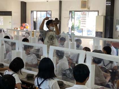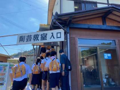 食事のあと、陶芸教室へ移動しました。係の方から作り方の説明を聞きました。何ができるか、楽しみです。