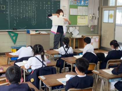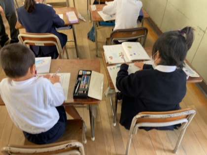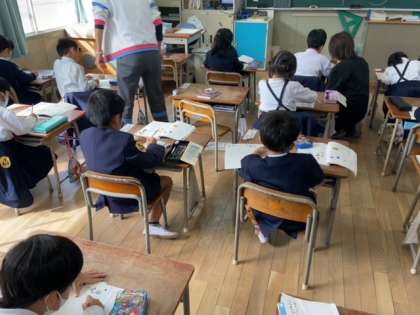 カタカナを書く学習をしました。「ケチャップ」など小さい字も入った言葉の書き方も先生に教わりました。ていねいに書く練習を進めています。