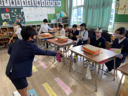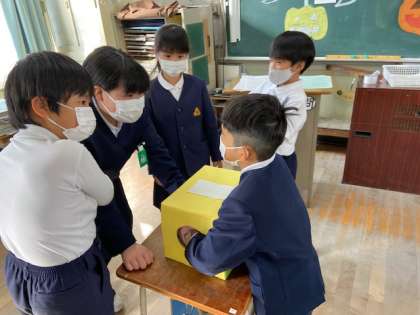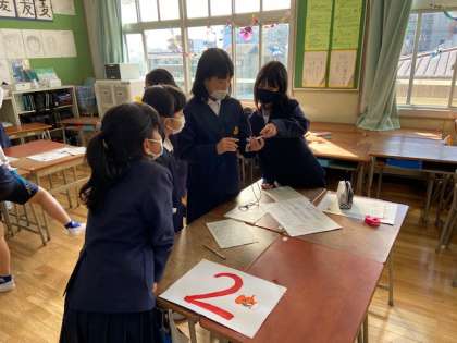 4年生は、1組が「箱の中身は何でしょう」、2組が「30秒ピッタシゲーム」、3組が「たこやきカップイン」です。どれもユニークな発想で企画した内容だと感心しました。やってきた他学年の児童もとても楽しんでいたようです。