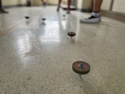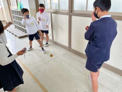 3年生が休み時間にコマをまわして遊んでいました。昔ながらの日本のあそびを子どもたちが楽しんでいる様子をみていると、懐かしくもあり嬉しくも感じました。