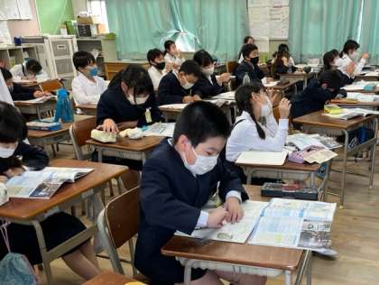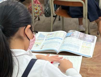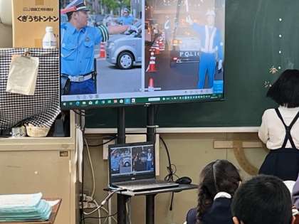 警察署の役割や仕事の内容について映像を見ながら学びました。警察で働く人たちが私たちの身近でどんな活動をしているかを友だちと相談して黒板に書き出していきました。